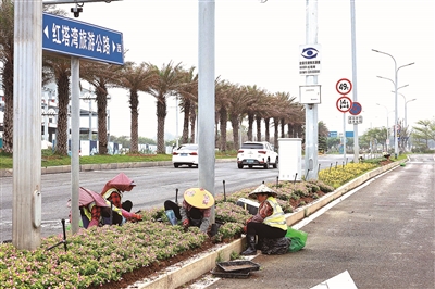 本报讯 近日,园林养护工人在米乐体育 石永二路和红塔湾旅游路沿线忙着清理落花期花卉、栽种新花,为城市道路换上“节日新装”。这是米乐体育 城市管理和综合执法局正在开展“五一”国际劳动节前时花补植更换作业的一个缩影,超60万株五彩缤纷的时花将陆续“上岗”,以最美姿态迎接八方游客。