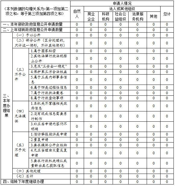 三、收到和处理政府信息公开申请情况