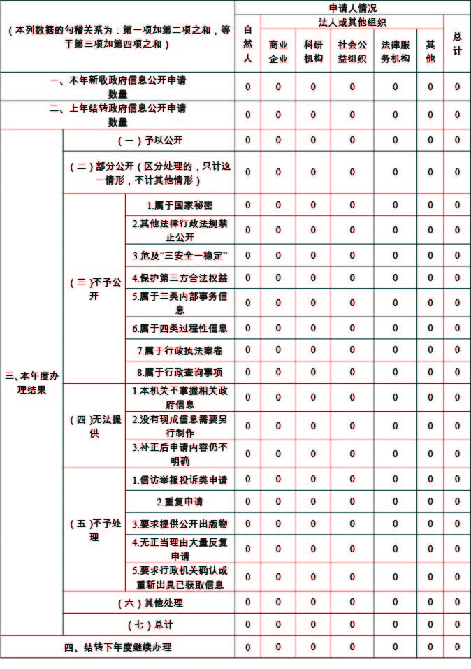 3.受理依申请公开情况。2020年度,我局未收到任何形式的申请公开政府信息的申请件。