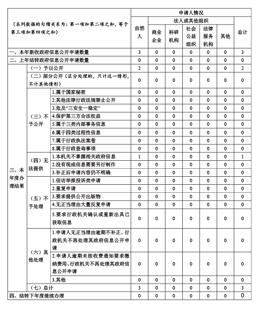 三、收到和处理政府信息公开申请情况