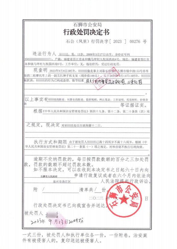 公安局2023年10月行政处罚公示