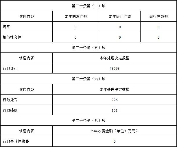 政府信息公开平台公开主动公开政府信息9条,其中机构设置2条、规划计划3条、食品药品和产品质量的监督检查情况2条、应主动公开的其他政府信息公开2条。主动公开行政许可信息32648条、行政处罚信息726条。