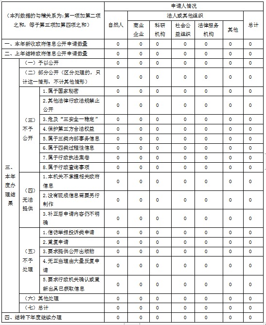 2020年我局未受理政府信息公开申请。