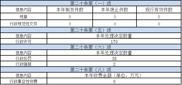 2023年,我局共制作、获取政府信息80条,同比下降1.2%。其中主动公开政府信息数12条、作为依申请公开信息数28条、不予公开信息数40条。主动公开的政府信息包括机构职能类信息3条、国土资源城乡建设环保能源类信息7条、其他类信息2条。2023年,我局向两馆移交主动公开政府信息12条。