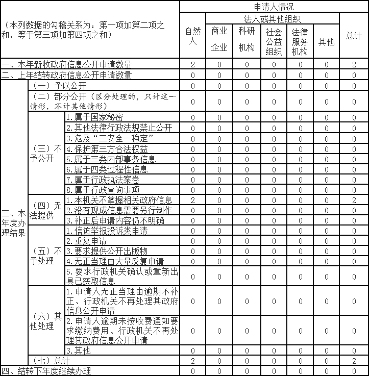 (二)依申请公开情况。2023年,收到政府信息公开申请2次,2次申请的信息皆“不存在”,我局已按时答复办结。未发生因政府信息公开申请行政复议、提起行政诉讼的情况。