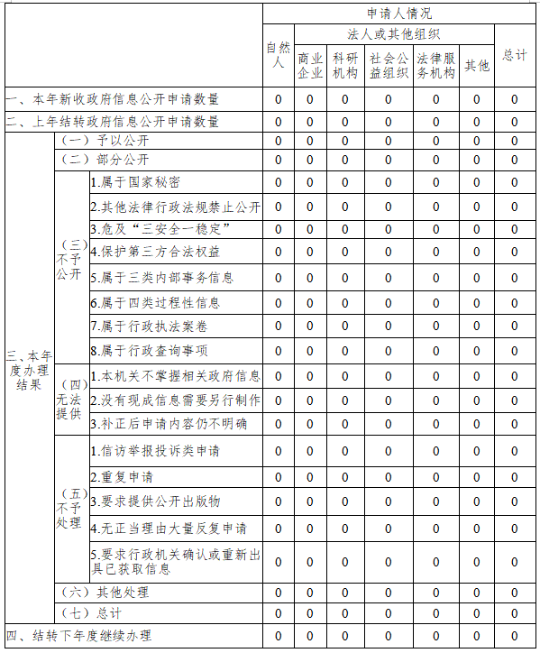 三、收到和处理政府信息公开申请情况