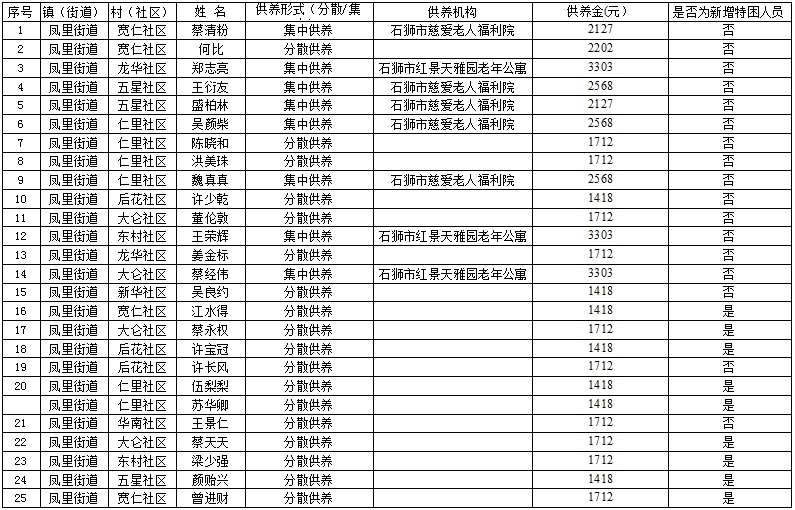 - 标题:【临时救助】凤里街道2024年10月特困人员供养金花名册