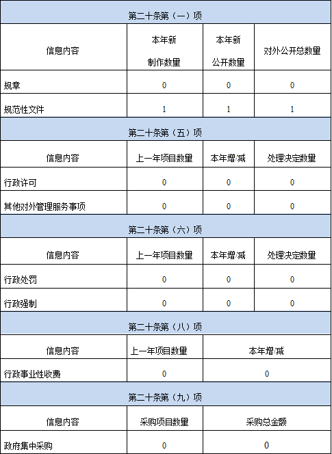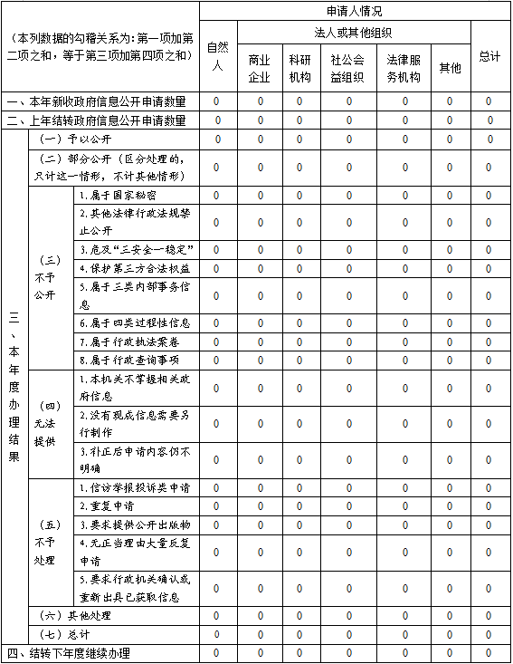 本年报根据《中华人民共和国政府信息公开条例》(以下简称“条例”)、《福建省政府信息公开办法》(以下简称《办法》)以及凤里街道2019年政府信息公开工作情况编制。本年报由总体情况、主动公开政府信息情况、收到和处理政府信息公开申请情况、政府信息公开行政复议、行政诉讼情况、存在的主要问题及改进情况及其他需要报告的事项六部分组成。本年报中所列政府信息公开数据统计期限自2019年1月1日至2019年12月31日。本年报的电子版可在米乐体育 门户网站(milletiyu.com)下载。如对本年报有疑问,请与凤里街道办事处联系,地址:米乐体育 长宁路92号,邮编:362700,电话:88781707。