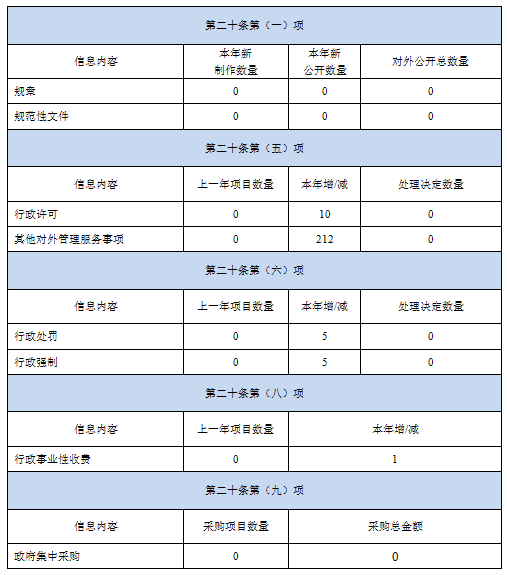 本年报根据《中华人民共和国政府信息公开条例》(以下简称《条例》)、《福建省政府信息公开办法》(以下简称《办法》)以及蚶江镇2020年政府信息公开工作情况编制。本年报由总体情况、主动公开政府信息情况、收到和处理政府信息公开申请情况、因政府信息公开工作被申请行政复议、提起行政诉讼情况、信息公开工作存在的主要问题及改进情况及其他需要报告的事项六部分组成。本年报中所列政府信息公开数据统计期限自2020年1月1日至2020年12月31日。本年报的电子版可在米乐体育 门户网站(milletiyu.com)下载。如对本年报有疑问,请与蚶江镇人民政府联系,地址:米乐体育 蚶江镇文政小区1号,邮编:362700,电话:0595-88211777。