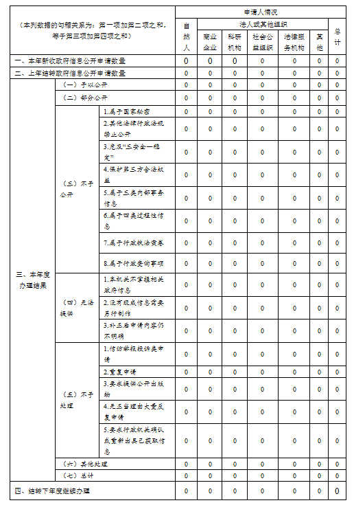 三、收到和处理政府信息公开申请情况