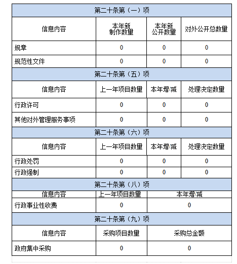 2019年主动公开政府信息数量7条,其中机构设置、主要职能、办事程序和办事指南4条;贯彻落实国家关于农村工作政策的情况3条。