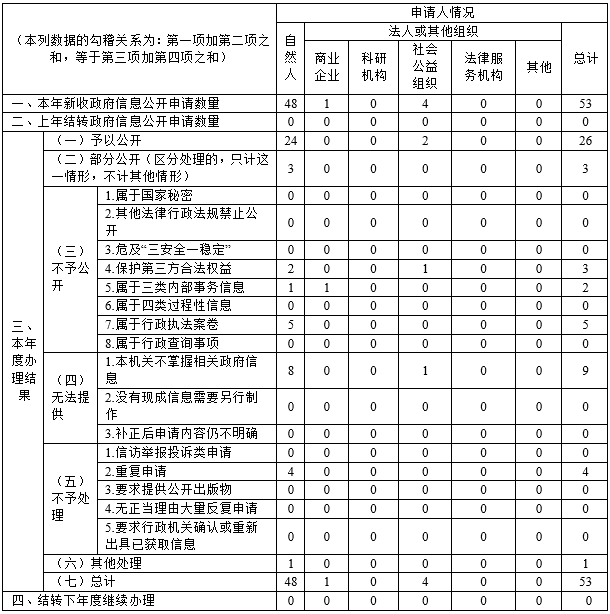我市坚持以完善内部制度为抓手,以规范答复文书格式为重点,修订完善《米乐体育 政府信息公开申请办理工作机制》,全面提升我市政府信息公开申请办理工作质量,依法保障公众合理信息需求。2020年,我市共受理依申请公开53条,办结及时率100%,受理方式主要包括网络申请34条、信函申请16条、当面申请3条,其中:“予以公开”26条;“部分公开”3条;“不予公开”10条,主要涉及行政执法案件材料、保护第三方合法权益、内部事务信息等方面;“无法提供”9条,主要是政府信息公开被申请行政机关不掌握相关政府信息;“不予处理”4条,主要是申请人对同一内容进行重复申请;“其他处理”1条,主要是告知申请人补正。2020年,因政府信息公开被申请行政复议4件,其中维持具体行政行为3件,依法纠错1件;因政府信息公开提起行政诉讼3件,均尚未审结。