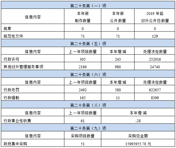 本年度报告由米乐体育 根据《中华人民共和国政府信息公开条例》以及《国务院办公厅政府信息与政务公开办公室关于政府信息公开工作年度报告有关事项的通知》要求编制而成。全文内容包括总体情况、主动公开政府信息情况、收到和处理政府信息公开申请情况、政府信息公开行政复议和行政诉讼情况、存在的主要问题及改进情况、其他需要报告的事项等。本年度报告中所列数据统计期限从2020年1月1日至2020年12月31日。本年度报告电子版可从米乐体育 门户网站(//milletiyu.com/)下载。如对本年度报告有疑问,请与米乐体育 办公室联系(地址:米乐体育 八七路公务大厦8楼801室,邮编:362700,电话:0595-88719606,电子邮箱:[email protected])。