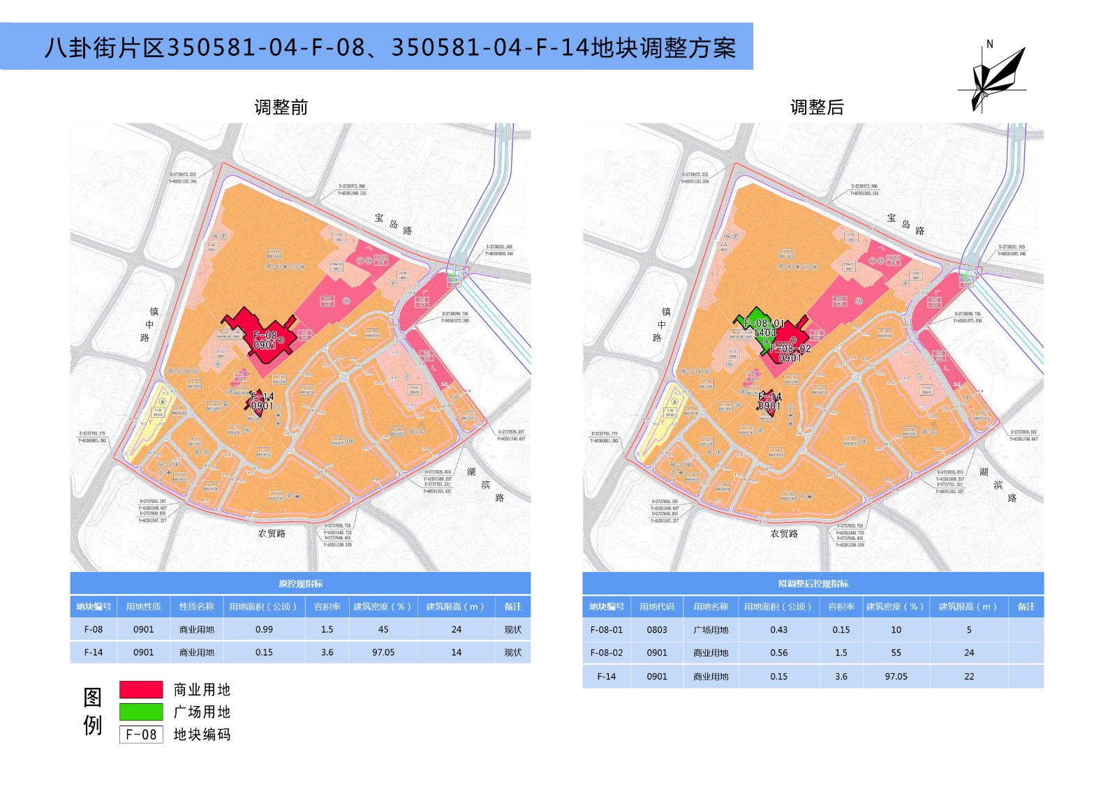 附件:1、米乐体育 八卦街片区350581-04-F-08、14地块调整方案