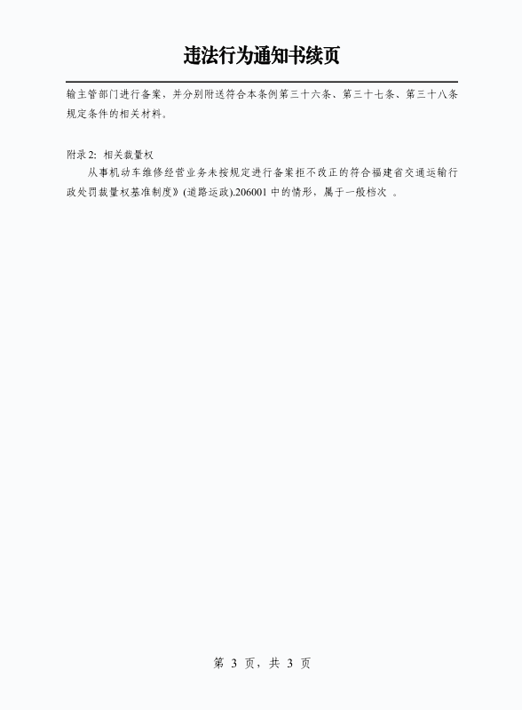 本机关于2024年11月12日对你(单位)从事机动车维修经营业务未按规定进行备案拒不改正的行为拟作出罚款人民币叁仟元整的行政处罚决定。同时,根据《中华人民共和国行政处罚法》第六条、第二十八条,对你(单位)进行批评教育,并责令你(单位)立即纠正上述违法行为。