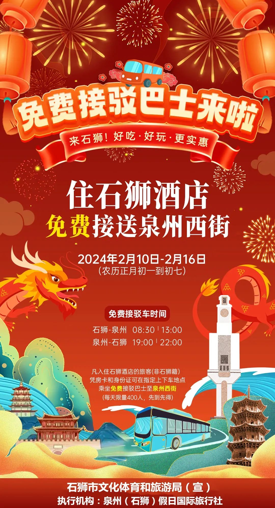 乘坐免费接驳巴士至泉州西街