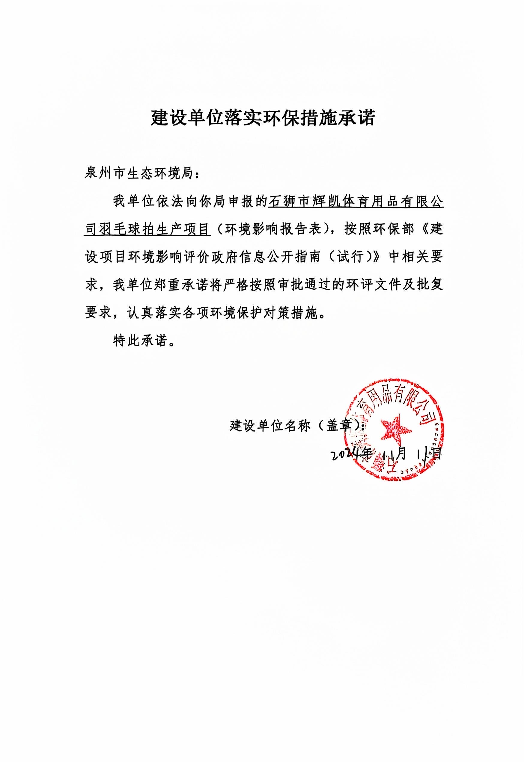 根据生态环境部关于印发《建设项目环境影响评价政府信息公开指南(试行)》的通知,泉州市石狮生态环境局依法对(米乐体育 辉凯体育用品有限公司年产羽毛球拍35万支生产项目)环境影响报告表拟作出审批意见进行信息公开。