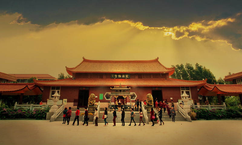 龙海禅寺位于古浮北面滨海。这是一片颇具规模的寺庙建筑群。龙海寺始建于南宋淳佑二年(1242年),至今已近800年的历史。初名龙兴寺,后改名龙海寺。当时,由晋江安海龙山寺住持释戒定上人命高徒清声法师倡建。宋、元、明三朝多次毁于兵乱,屡废屡建,香火不曾中断。1995年在海内外乡亲呼声下,乡绅硕德决定扩建寺院,于1998年12月请泉州承天寺通光法师、法安法师来寺住持筹划建造,即为现在的龙海寺。寺院占地百余亩,建筑有大雄宝殿、念佛堂、五观堂、慈爱福利院、弥陀院、万佛殿等。大雄宝殿内供奉的是释迦牟尼佛,造像妙相庄严,气韵生动。西旁是阿难尊者及东方药师佛和西方弥陀佛。背后则是观音、文殊、地藏、普贤四大菩萨,象征着十方佛土同归西方净土。万佛殿为五层建筑,一层为停车场,二层为俗众斋堂,三层为僧众斋堂,四、五层则是万佛殿。殿中供奉一尊八九米高的阿弥陀佛,四周环绕着万尊佛像,庄严精致,也是象征着十方佛土同归西方净土。弥陀院为四层建筑,共有147个房间,可容纳700人在此住宿。这里既是念佛行人安心专修净业的清净之地,又是一个安心养老的理想场所。寺中老人福利院始建于2003年,2007年完工。分四层共98个房间,配备有食堂、餐厅、活动健身场所等。目前安置了68名孤寡老人,他们在这里安度晚年,除衣、食、住、医均免费外,每人每月还发200元作为零花钱,切实解决了老人们的生活困难问题。老人福利院可谓是龙海寺与中华慈善总会石狮分会利益众生、服务社会的一项善举。